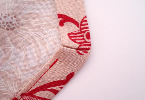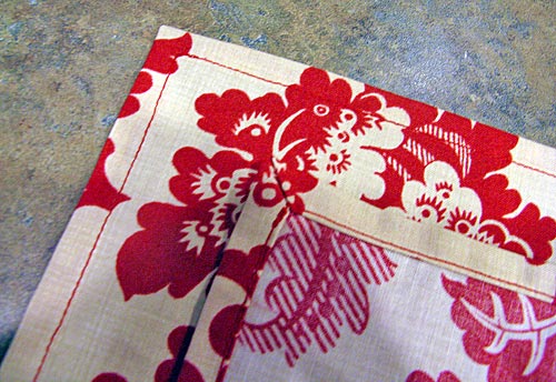 1. Our scarf is simply made like a large napkin with a ¼” narrow double turn hem all around and clean mitered corners.