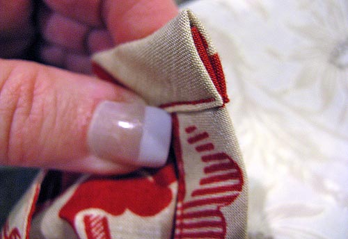 12. Press and fold this triangle UNDER the binding on both sides to create a clean corner.