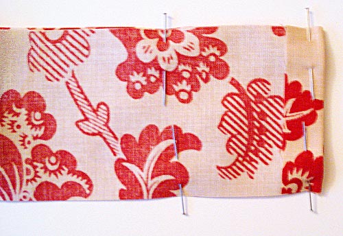 3. Pin two of these strips right sides together along top and bottom raw cut edges, lining up both folded ends.