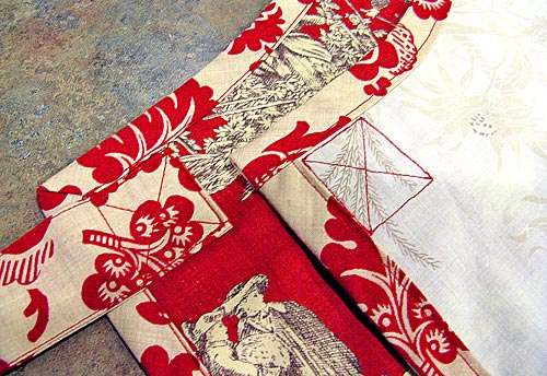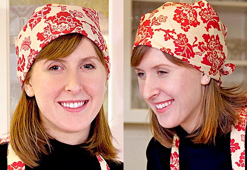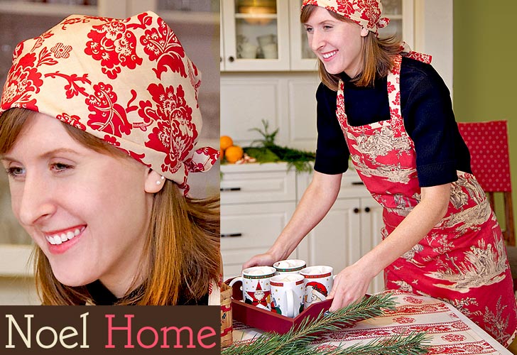 • 2 yards of 44-45″ wide fabric for apron binding, waist and neck ties, and matching head scarf: we used Lumiere de Noel by French General for Moda Fabrics in Antique Red