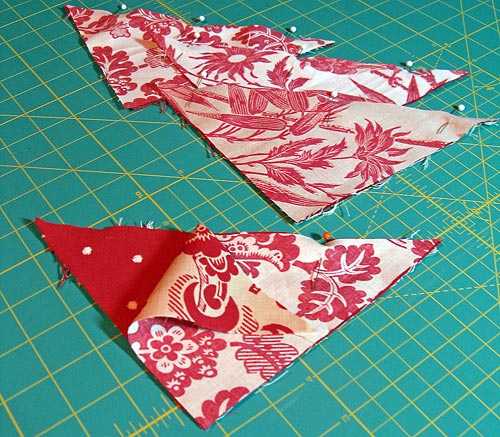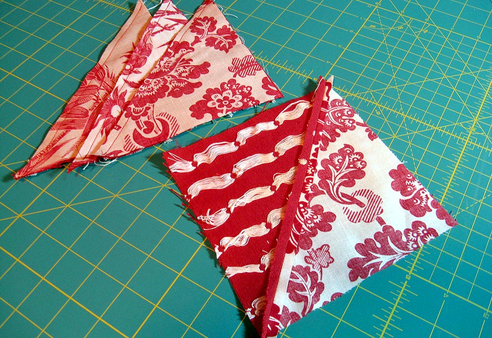 - Using a ¼” seam allowance, stitch together each triangle pair. Press all seams open.