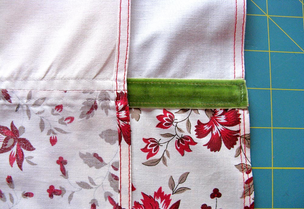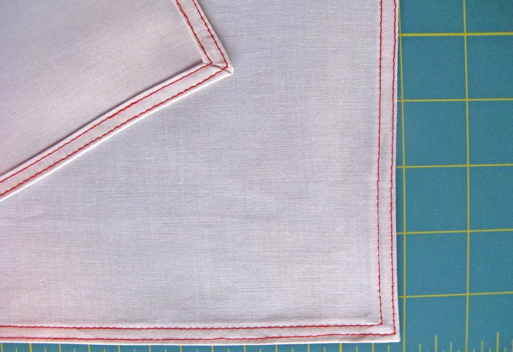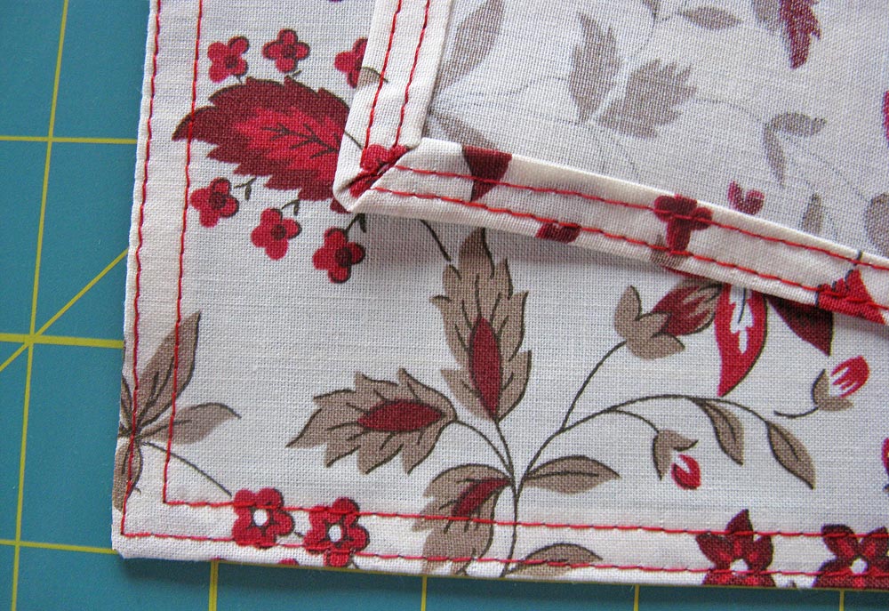 The only fussy part of this project is the narrow hemming. I actually like to do these kind of hems with the pretty little mitered corners… but I’m weird that way. Another option would be to make a double-layer towel.