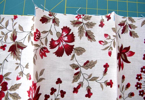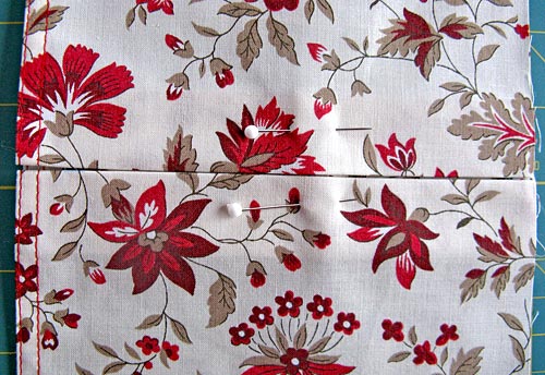 - Fold each ‘peak’ in to the center center crease so they meet in the exact middle, forming a lovely center pleat. I pinned my pleats in place so they wouldn’t shift during the remainder of the construction.