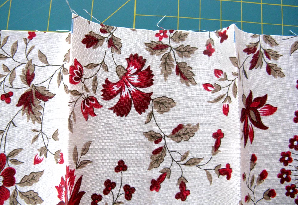 - Press the band, wrong sides together, along each 2″ line. You’ll create two little ‘peaks’ in the fabric.