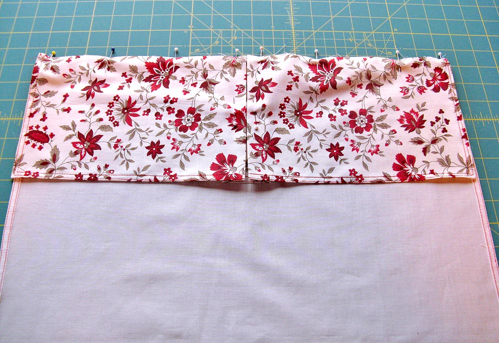 - Sew the 21″ x 25″ pieces right sides together along both sides and the top. Turn right side out.