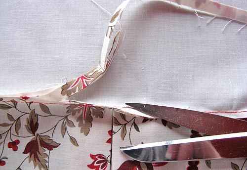 - Lay the ribbon over the seam. Trim to size, leaving about ½” extending beyond both sides. Clip the corners of each end of the ribbon at a diagonal. This will help hide the raw edge beneath the fold.