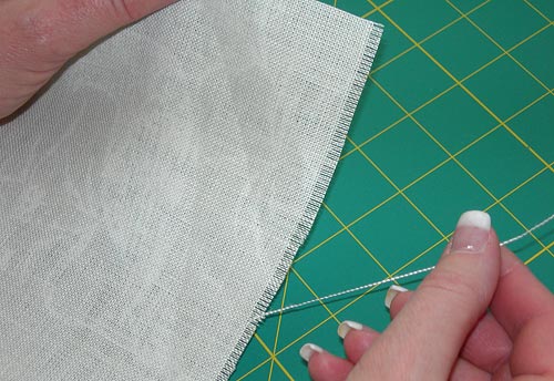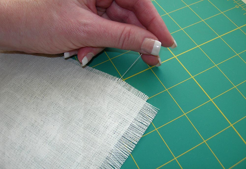 - Pull a single thread from one edge. To start the thread, you can use a pin to pick out the fiber until you have enough to grab and pull. Pull gently.