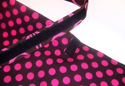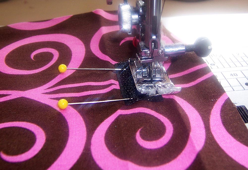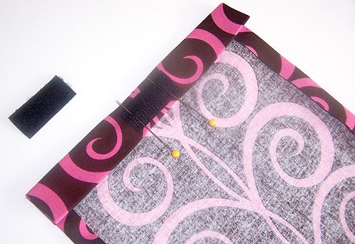 - Unfold the hem and sew the Velcro® to the fabric through a single layer of fabric, re-pinning as necessary.