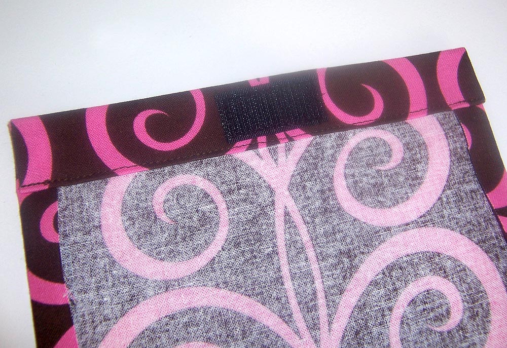 - To finish, topstitch ¼” from the edge, starting at the right side of the Velcro hook piece you just stitched in place, going around the nursing cover, closing the 4″ opening along the bottom, and ending at the left side of the strap. Remember to pivot at all the corners.