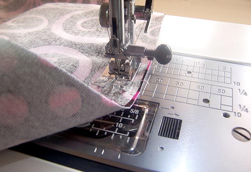 NOTE: When sewing a knit fabric to a woven fabric, place the knit side down, against the feed dogs of the sewing machine. This helps prevents the knit from stretching and puckering as you sew.