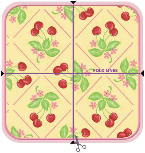 - Fold the top square in half both directions to find the center of each side. Clip a small notch to mark each of these four center points. Repeat to find matching center points on the bottom overlapped square.