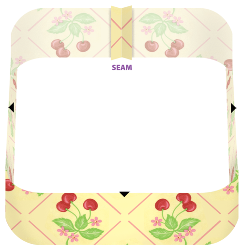 NOTE: The yardage above is enough, at a 45″ width, to cut either the pieces for the 3″ or the 5″ booster. At the narrower width, the side strip has to be cut as two pieces. If you have a laminate that is 52″+ you can cut the strip as one continuous length, and so could get away with a bit less yardage. Check the cuts below to make your final determination based on your chosen fabric. We very carefully fussy cut and pattern-matched all our pieces. If you wish to go this same route with specific fussy cutting, we would recommend a full yard. - TWO packages of coordinating piping; we used Wrights Maxi Piping in soft pink and teal