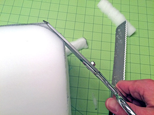- Using an electric knife or a bread knife with tight serrations, cut out the block. We cut the general shape first …