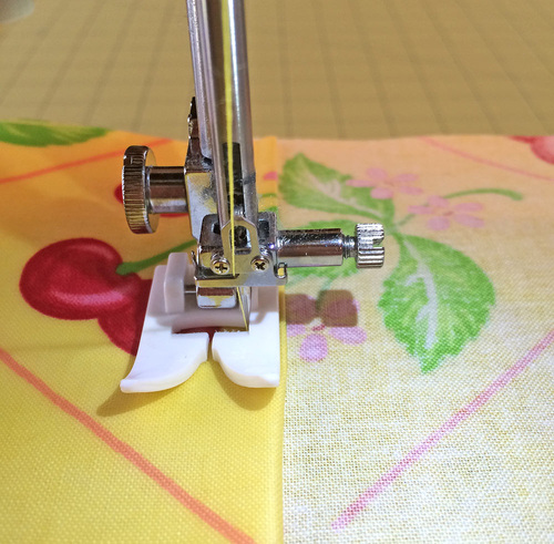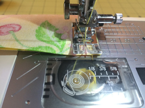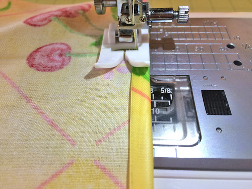 - Stitch in place, running your seam ¼” from the inside folded edge. We used our Janome Ultra Glide foot.