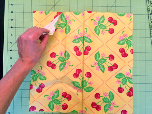 - Center the interfacing vertically on the wrong side of the fabric. Following manufacturer’s instructions, and using a pressing cloth, fuse in place.
