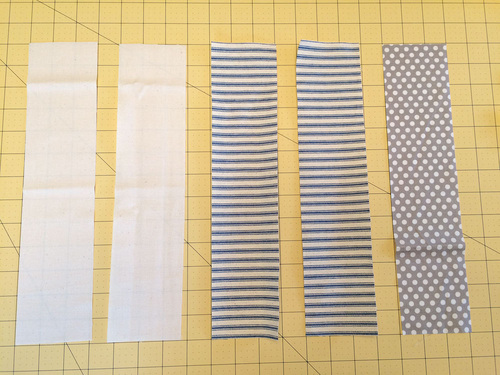 - From the interfacing cut TWO 2″ x 13″ strips.