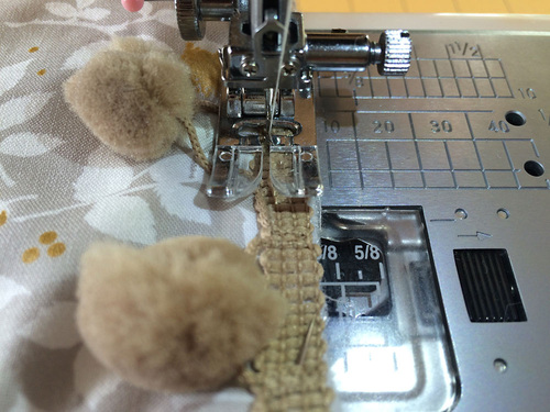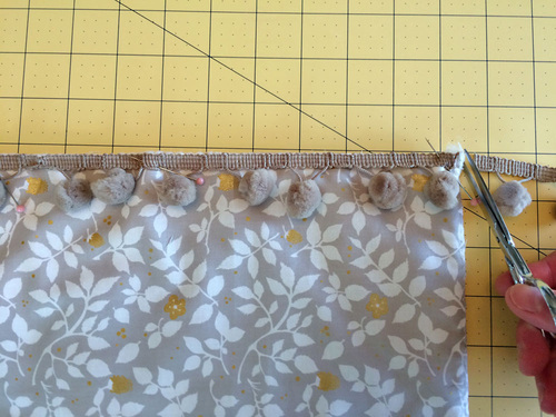 - For the pom pom trim, to get a cute double pom in each corner as on our sample, we recommend cutting one length per side, starting and stopping your cut with a full pom at each corner.