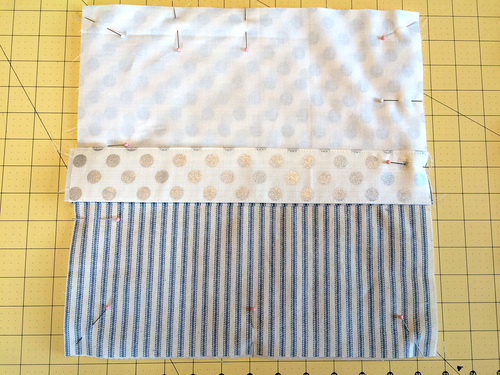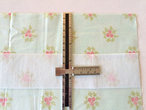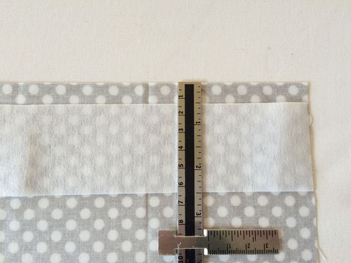 - Place the interfacing strip across the top/underlap panel 3½” down from one 13″ raw edge. This is the edge that underlaps, so if you have a directional fabric, you should be working with the bottom 13″ raw edge.