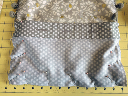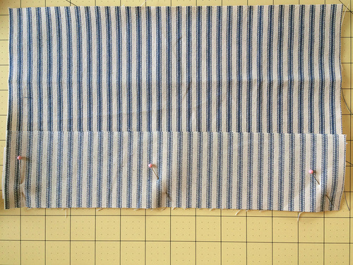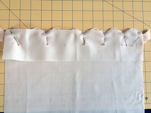 - If you are not adding trim, simply place the facing strip right sides together with the bottom/overlap panel and pin.