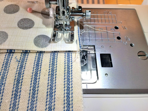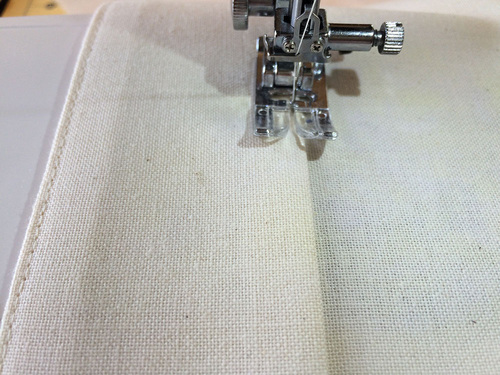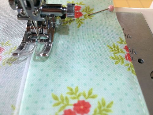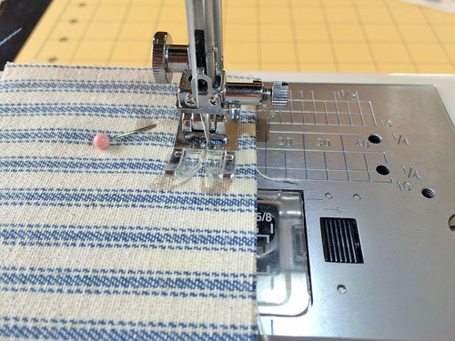 - Using a ½” seam allowance, stitch around all four sides, pivoting at the corners.