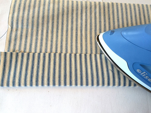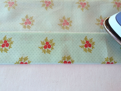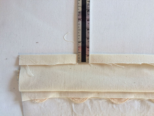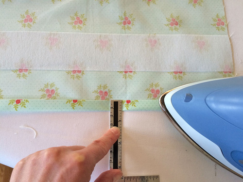 - Fold back an additional 2″, just covering the fused interfacing strip. Press in place.