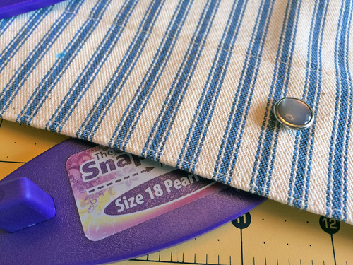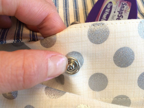 - Follow manufacturer’s instructions or our tutorial on inserting metal snaps.