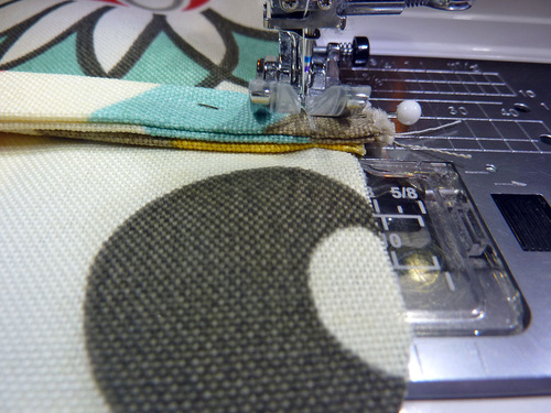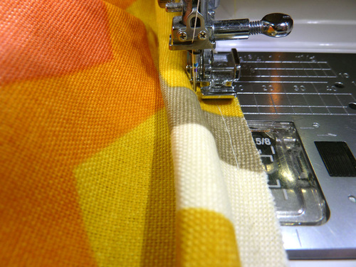 - Machine baste the piping to the panel. We continued to use our Zipper foot.