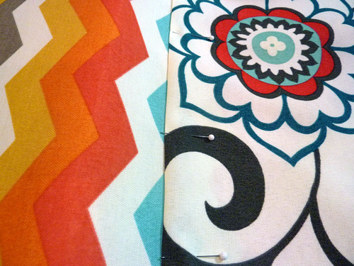 - With the seat piece in position, pin the front to the back horizontally across the cover, right along the inside horizontal seam.