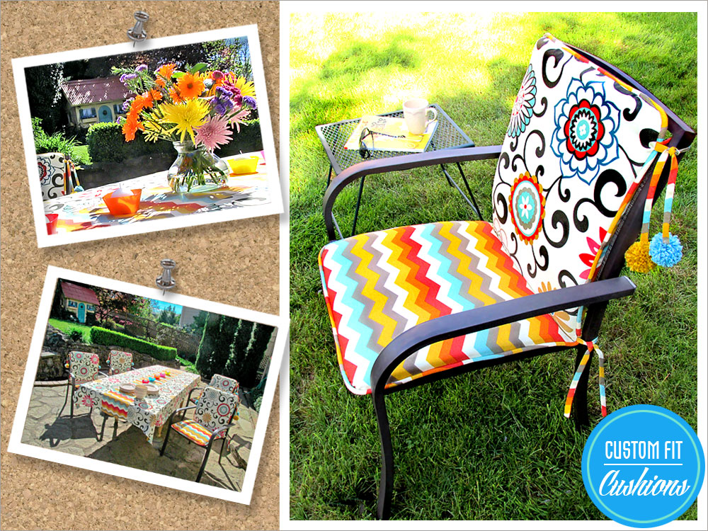 I bet you’ve looked longingly at new outdoor chair cushions in the store or the pages of a pretty catalog, but they can be so expensive; and often, the fit just isn’t what you hoped for once you get them home.