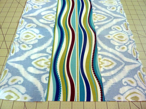 - Place an end panel right sides together along both 19½” raw edges of the center panel. Pin in place.