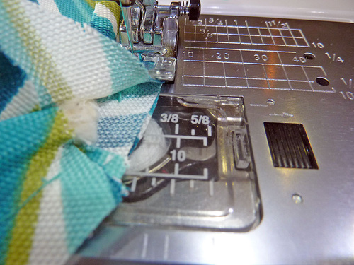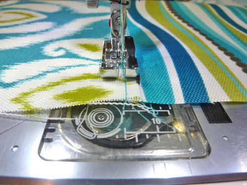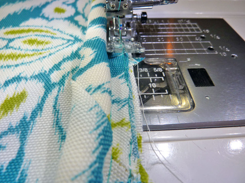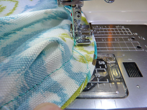 - Start stitching about 1″ from the raw end of the piping (to facilitate a clean finish). Stitch all the way around.