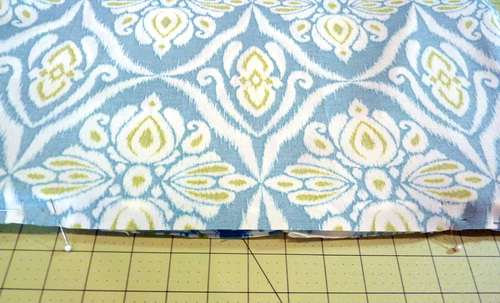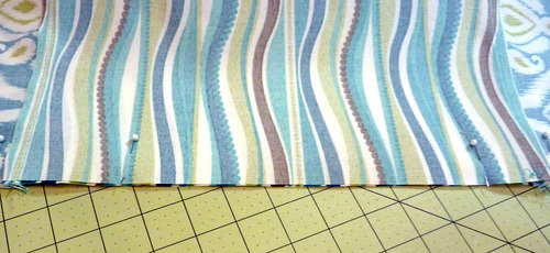 - Carefully align all the raw edges and pin in place, leaving an 8″ – 10″ opening along the bottom edge.