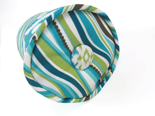 - ¼ yard of 45″ wide coordinating indoor/outdoor fabric as the secondary fabric for the end panels and button covers; we originally used 54″ Jaipur from Terrasol Indoor/Outdoor in Peacock