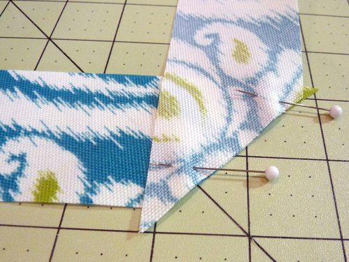 - Remember, you are only pressing the very end of the bolster, just enough to place your pins. If pressing seems too complicated, you could also simply pinch the fabric to set a mark and then add a pin. The seam line and the three pin marks will now match the quadrant pins on the end circles.