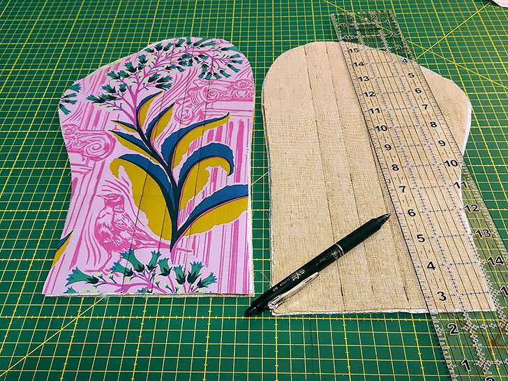 NOTE: As above, you can fold your fabric wrong sides together and use the paper pattern right side up to cut the two lining panels.