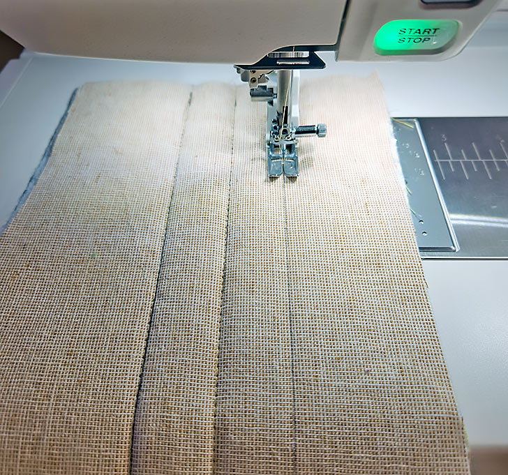 - Stitch along each side of the accent panel. Each seam should run right next to but not on the main body of the linen panel.