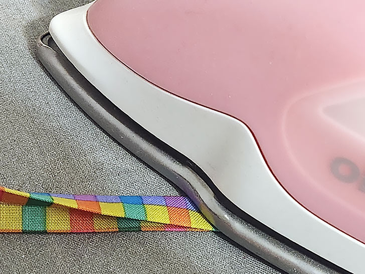 - As you did above with the strip for the hanging loop, fold this binding loop in half, wrong sides together, and press to set a center crease. Unfold and press the raw edges into the center, then re-fold along the original crease line to form your final binding loop.