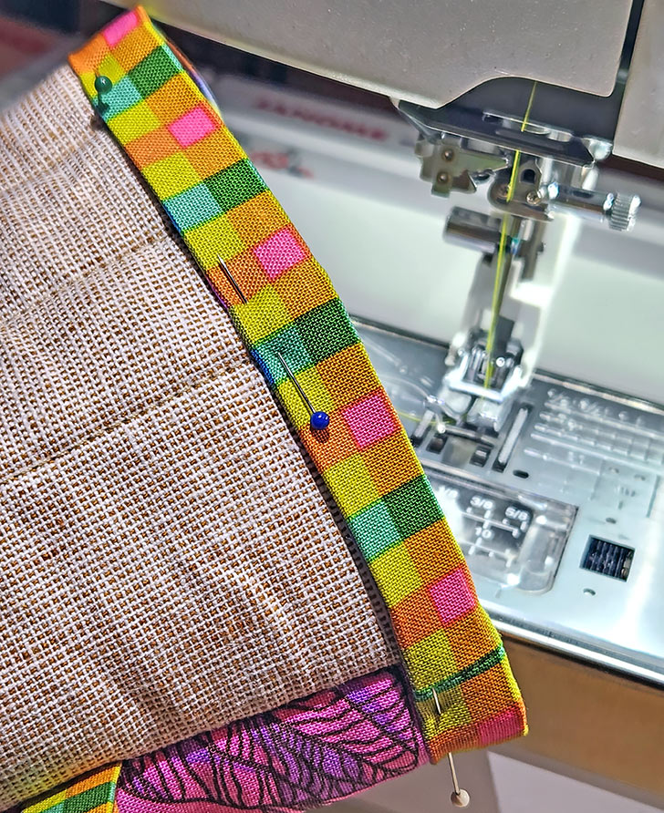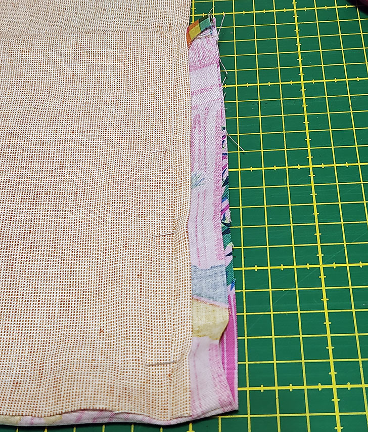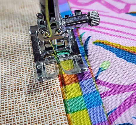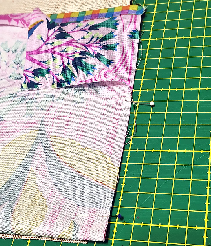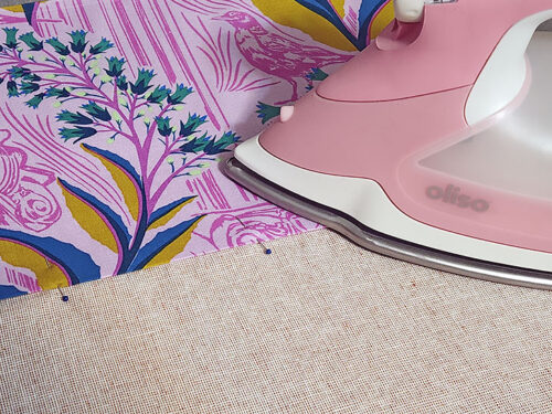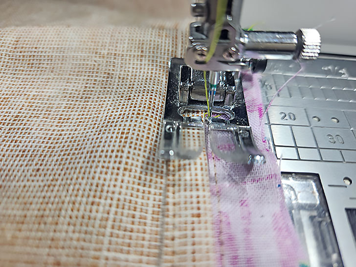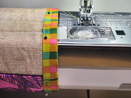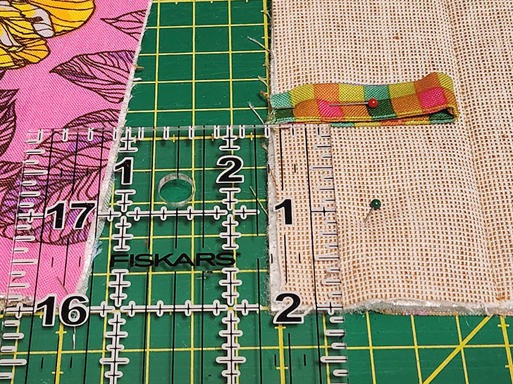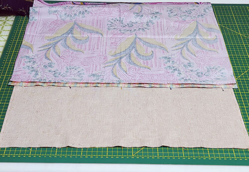 - It’s okay to pin through the linen panel to help keep the side edges secure, but you will not be stitching on the linen.