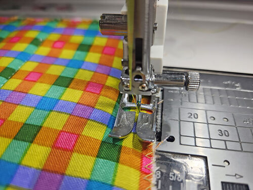 - Re-thread the machine as necessary with thread to best match your accent fabric in the top and bobbin. Re-set for a standard stitch length.