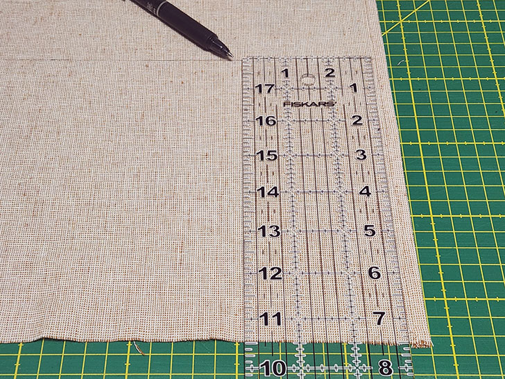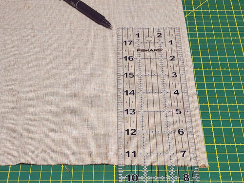 - With the main linen panel hemmed, draw a horizontal line on the right side of the panel 7½” up from its bottom raw edge.