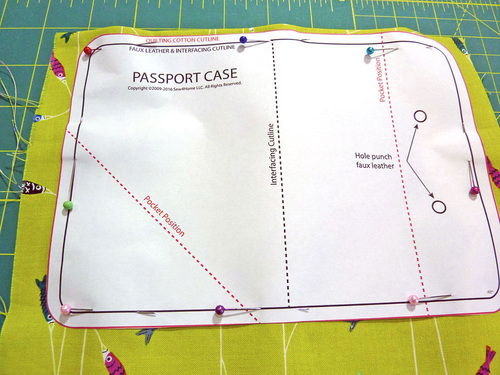 The small interior pockets are done in quilting cotton lightly interfaced to give them enough stability to hold the passport open to the correct page. You could substitute a thin, clear vinyl but keep in mind that this additional layer adds quite a bit of extra thickness, which can make precise edgestitching tricky.