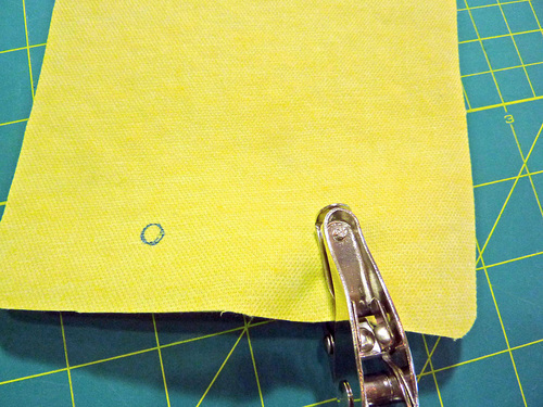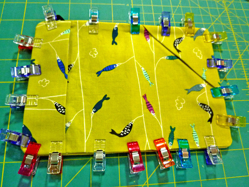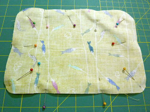 - Place the finished interior panel right side up on the exterior panel, so the two pieces are wrong sides together. Clip together the layers.