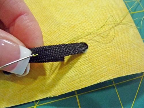 - Overlap the ends approximately 1½” and hand tack in place with just 2-3 small stitches.