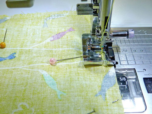 - Scrap or ¼ yard of 44”+ wide quilting weight cotton; we used two bright coordinating cottons from our stash; the diamonds are from the Joie de Vivre collection by Bari J for Art Gallery and the fish are from the Raindrop collection by Rashida Coleman-Hale for Cotton + Steel