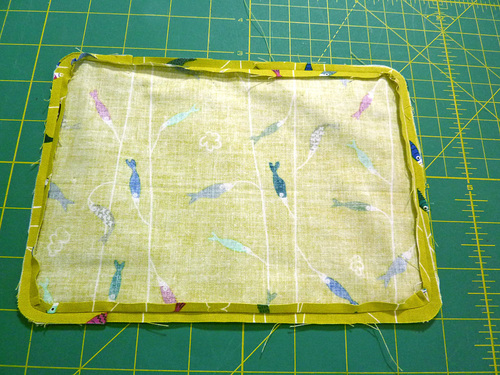 - Carefully turn the sewn panel right side out through the opening.