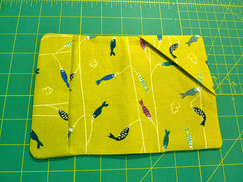 - Fold the pocket panels in half, wrong sides together, sandwiching the interfacing between the layers.