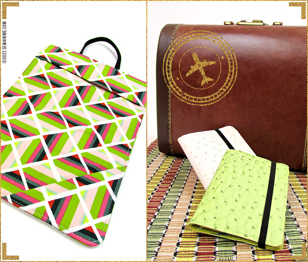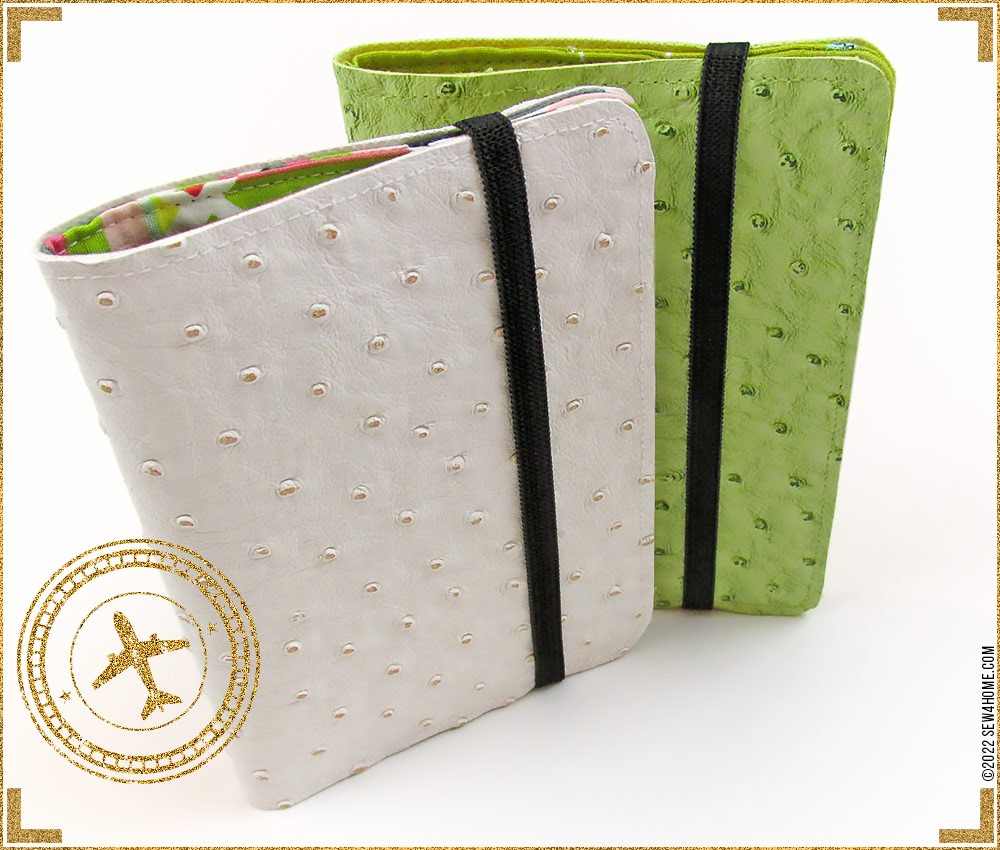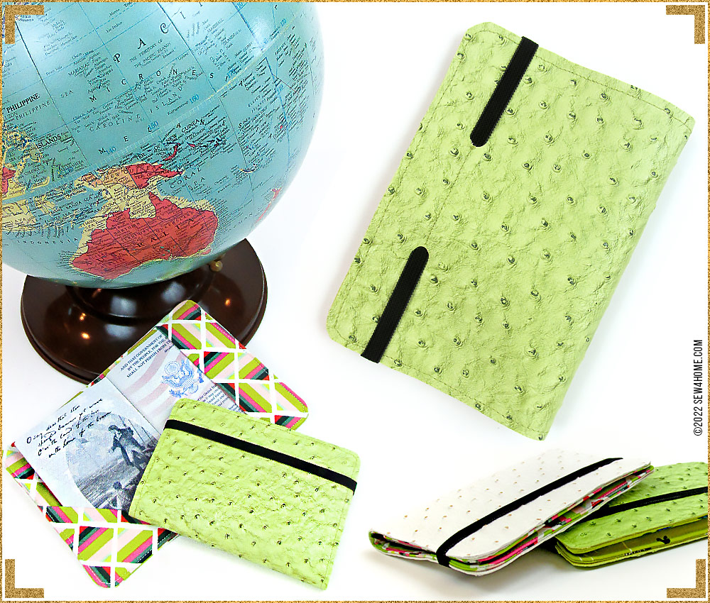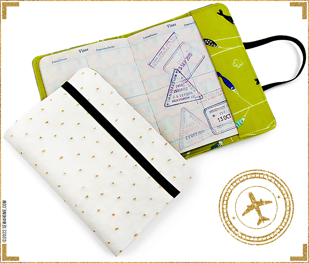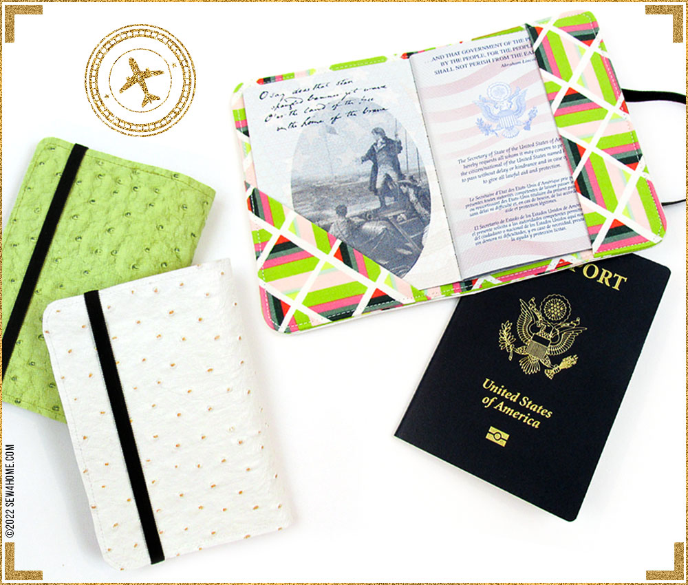 One of the top searches each travel season is passport covers. We’ve also seen several versions for sale at in-store and online retailers. Everyone must be on the go! For something this popular, there needs to be a quick and easy S4H version. We have you (and your passport) covered. Using faux leather for the outside and quilting cotton for the inside, our little folders protect your passport from dirt and keep it flat. Two interior pockets hold it open to the appropriate page, and a stretchy elastic band keeps it shut.