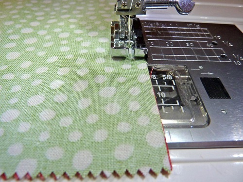 NOTE: If you don’t have a Walking foot or a guide bar, you may want to consider drawing your quilting lines with a fabric pen or pencil prior to stitching to give yourself nice straight lines to follow. - To quilt the fabric and batting layers together, start from one corner, and stitch a line that runs diagonally through each square.