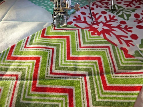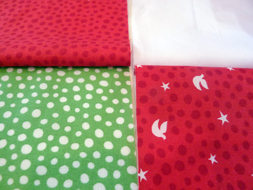 We originally used NINE prints from the Joy collection by Kate Spain for Moda. This is an older collection, that is no longer readily available. But, there are always lots of great new holiday collections.