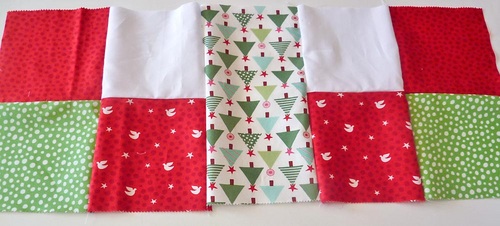 Using our diagram above as your guide, assemble the seven different sets of blocks that will make up the top of the table runner. To do this, it helps to sort out the fabric cuts needed for each block and stack them in the order to be sewn.